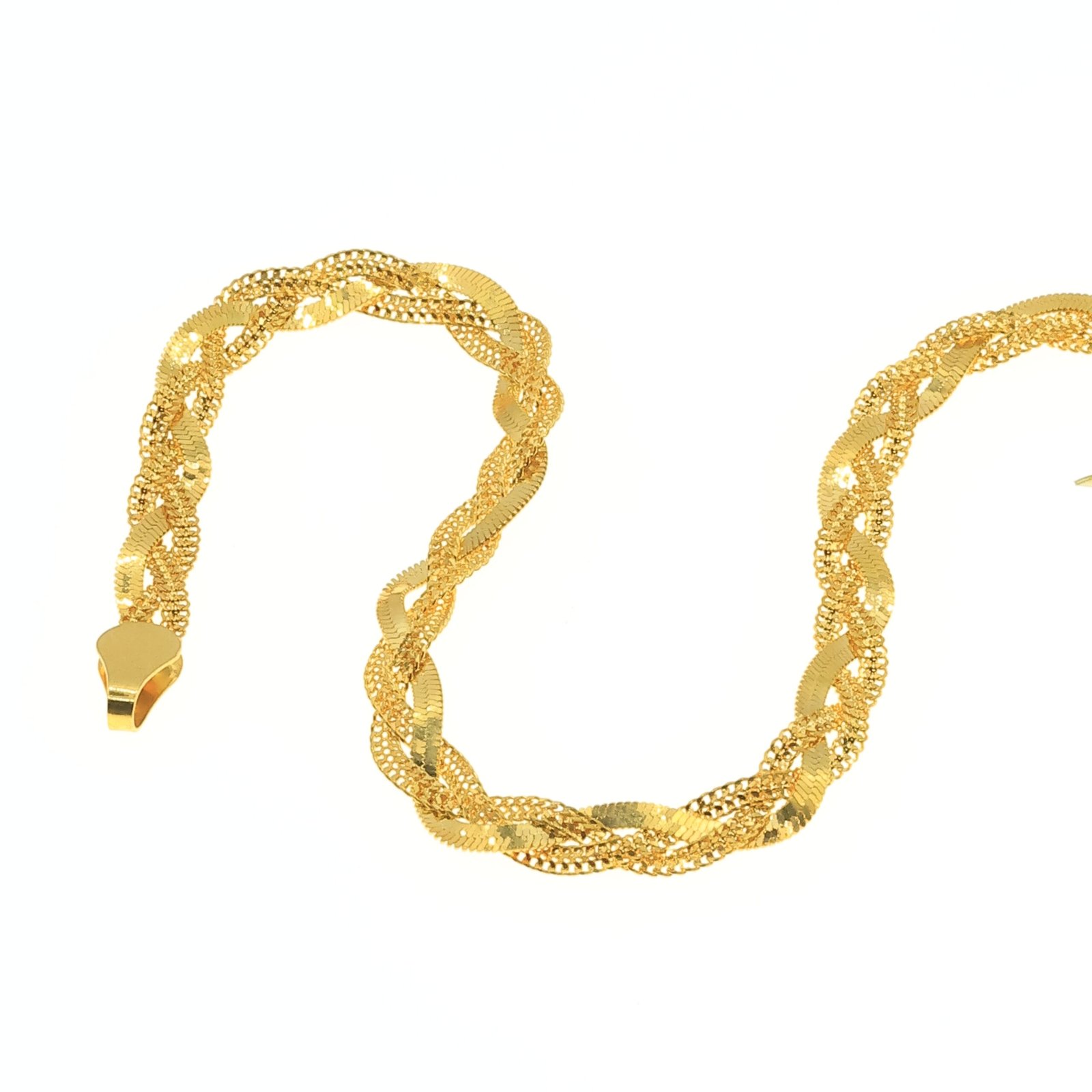 انسيال ذهب تركي شكله رايق ولمساته ناعمة، يلبس على اليد بخفة ويعطي لمعة تفتح النفس. تصميمه مرتب يناسب البنات اللي يحبّن الستايل البسيط بس بشي يلفت.