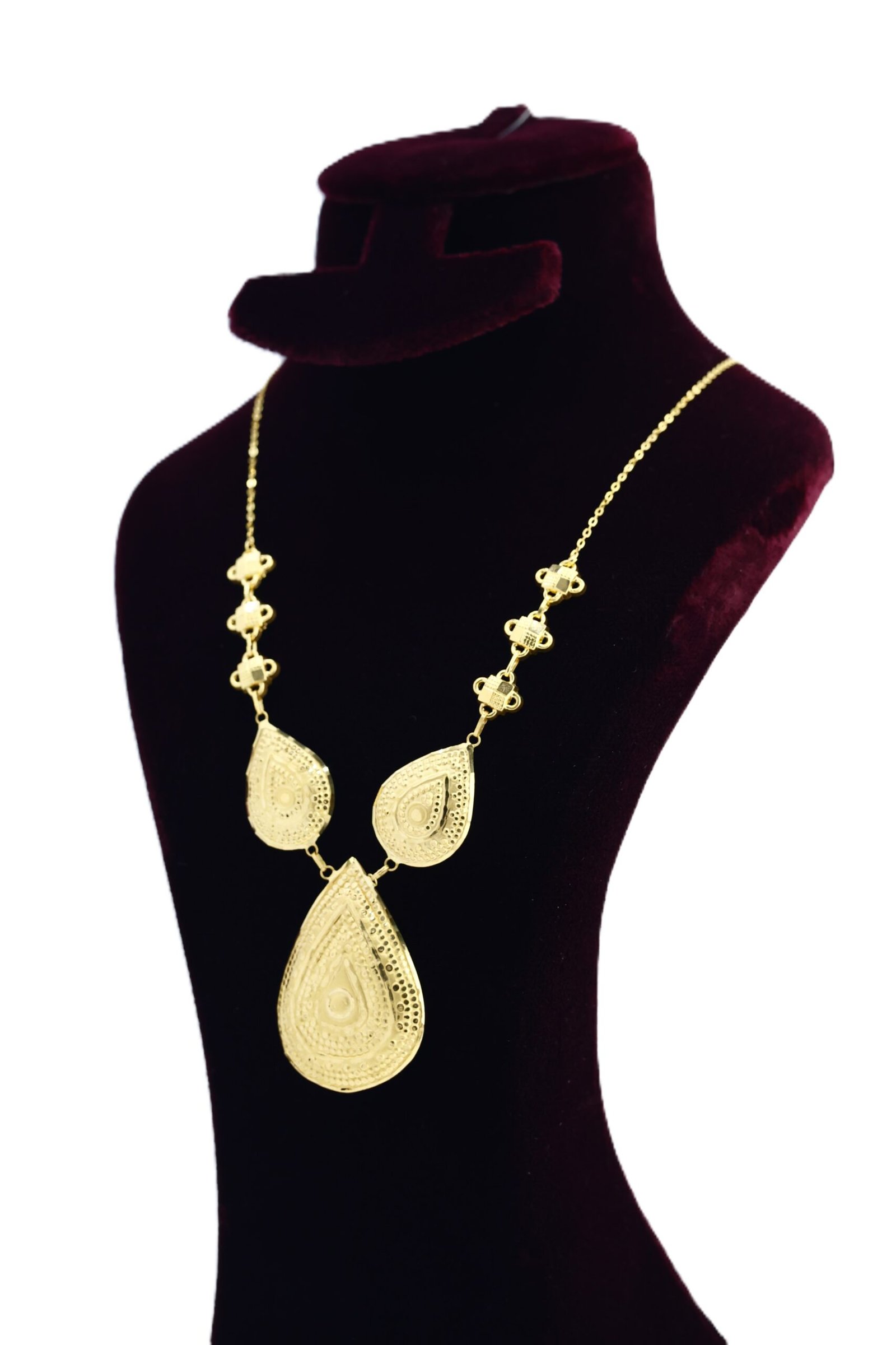 عقد البهجة بتصميمه التقليدي ولمعته الساحرة يجسد روح الأصالة والفرح، قطعة فاخرة تنبض بالهوية البحرينية وتزيدك أناقة في كل مناسبة.