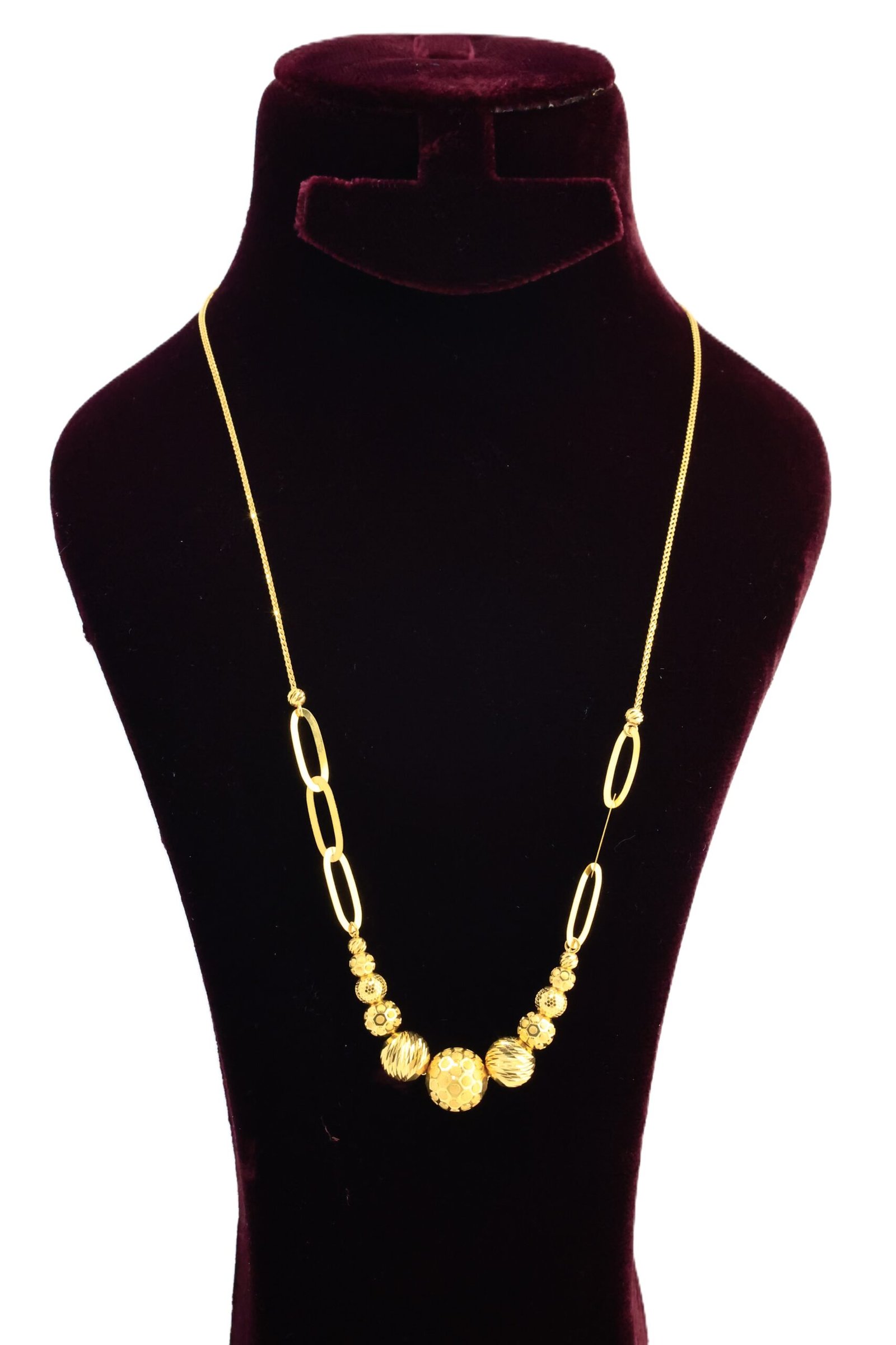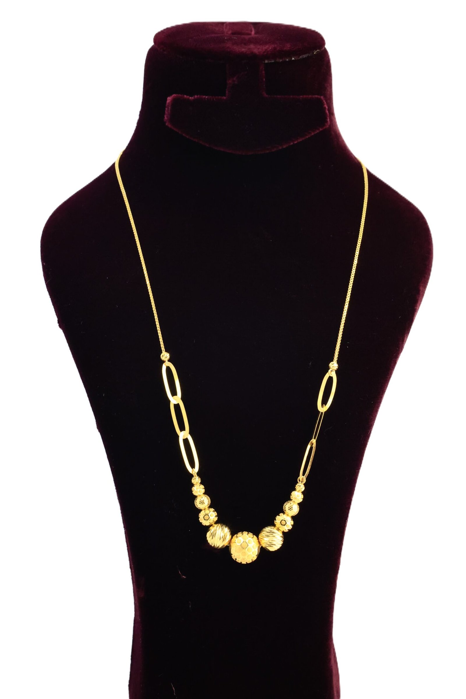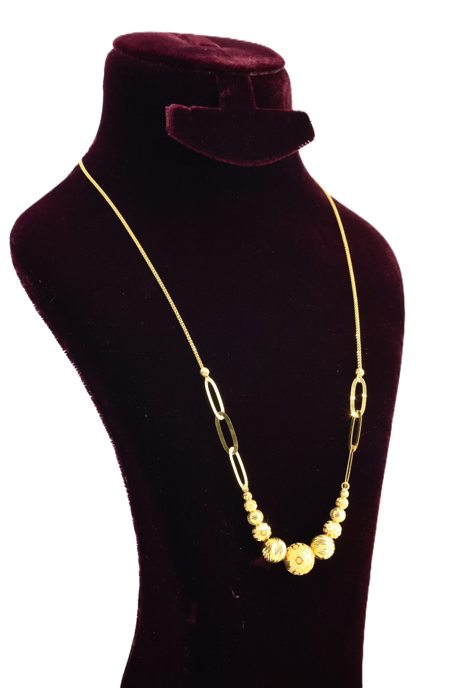 عقد كرات ذهب تركي لمعةه تخطف العين من أول نظرة ✨ تصميمه بسيط بس حضوره قوي، الكرات مرتّبة بشكل أنيق يعطي إحساس بالفخامة والذوق العالي.